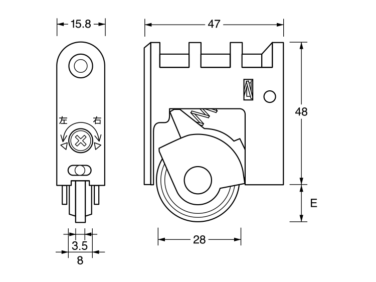 • ※ダイヤス戸車を施工する場合、木部への掘り込み加工等は金具現品に合わせて加工して下さい。