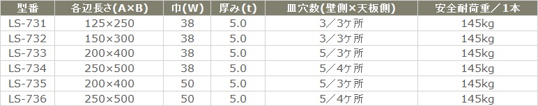 サヌキ カウンターブラケット カウンターブラケット SUS製 ヘアーライン 材質 SUS304 仕上 ヘアーライン 品番 サイズ 入数 価格 購入数 LS-731 125×250×38 1本 3,350 - + LS-732 150×300×38 1本 3,800 - + LS-733 200×400×38 1本 4,950 - + LS-734 250×500×38 1本 6,550 - + LS-735 200×400×50 1本 6,200 - + LS-736 250×500×50 1本 8,500 - + カウンターブラケット 鉄製 ホワイト 材質 鉄 仕上 ホワイト 品番 サイズ 入数 価格 購入数 LY-832 125×250×38 1個 1,550 - + LY-833 150×300×38 1個 1,630 - + LY-834 200×400×38 1個 2,050 - + LY-835 250×500×38 1個 2,260 - + LY-836 200×400×50 1個 2,250 - + LY-837 250×500×50 1個 2,440 - + カウンターブラケット 鉄製 ブラック 材質 鉄 仕上 ブラック 品番 サイズ 入数 価格 購入数 LY-832 125×250×38 1個 1,650 - + LY-833 150×300×38 1個 1,690 - + LY-834 200×400×38 1個 2,100 - + LY-835 250×500×38 1個 2,400 - + LY-836 200×400×50 1個 2,380 - + LY-837 250×500×50 1個 2,600 - +