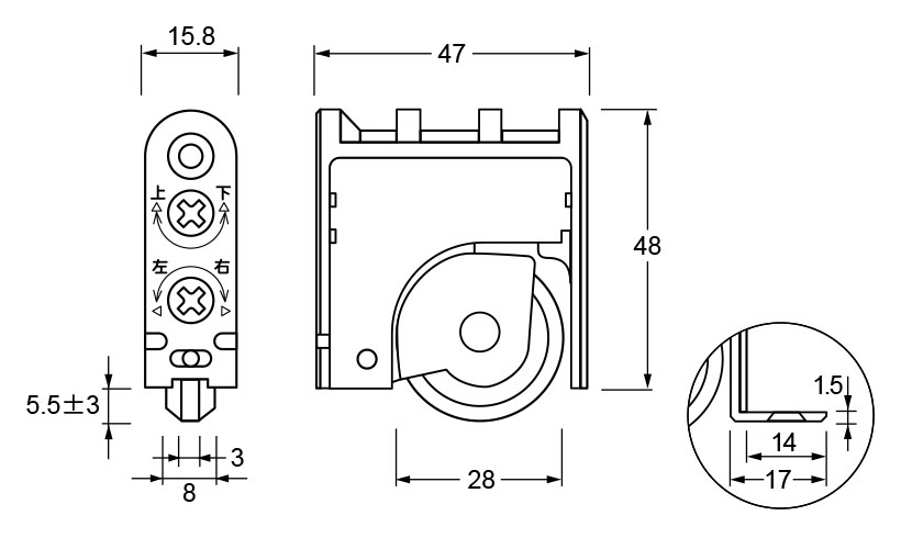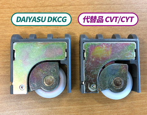 当店で販売しているDAIYASUの戸車は、製造を引き継いだ各メーカーの製造する「DAIYASUの代替品」となります。