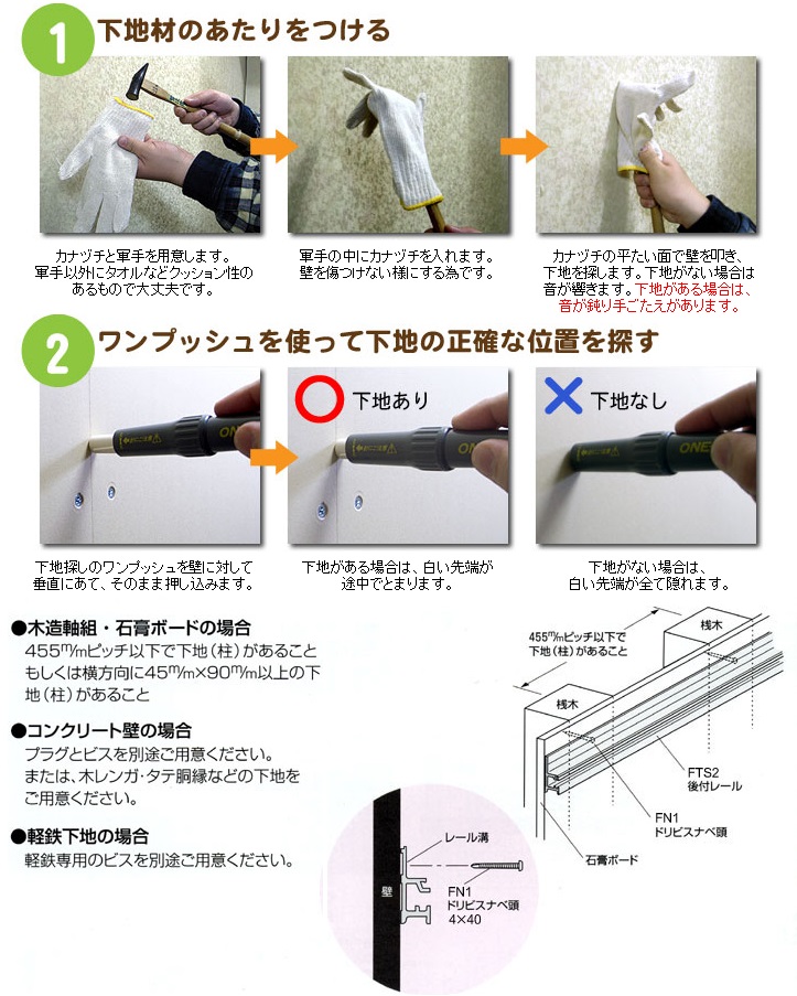 下地探しのONE-PUSH 下地センサーはこちら ONE-PUSH 天井、壁の下地発見に、ワンプッシュ。 簡単、確実、手軽で便利です。 スペアー針が2本はいっています。 針が出ますので取り扱い及び保管に気をつけてください。 型番 入数 価格 購入数 ワンプッシュ本体 1本 820 - + ワンプッシュ用替針(10本入り) 1セット 500 - +