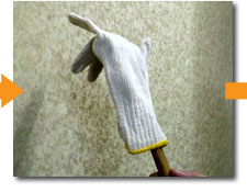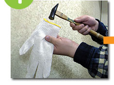 軍手の中にカナヅチを入れます。