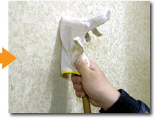 カナヅチの平たい面で壁を叩き、